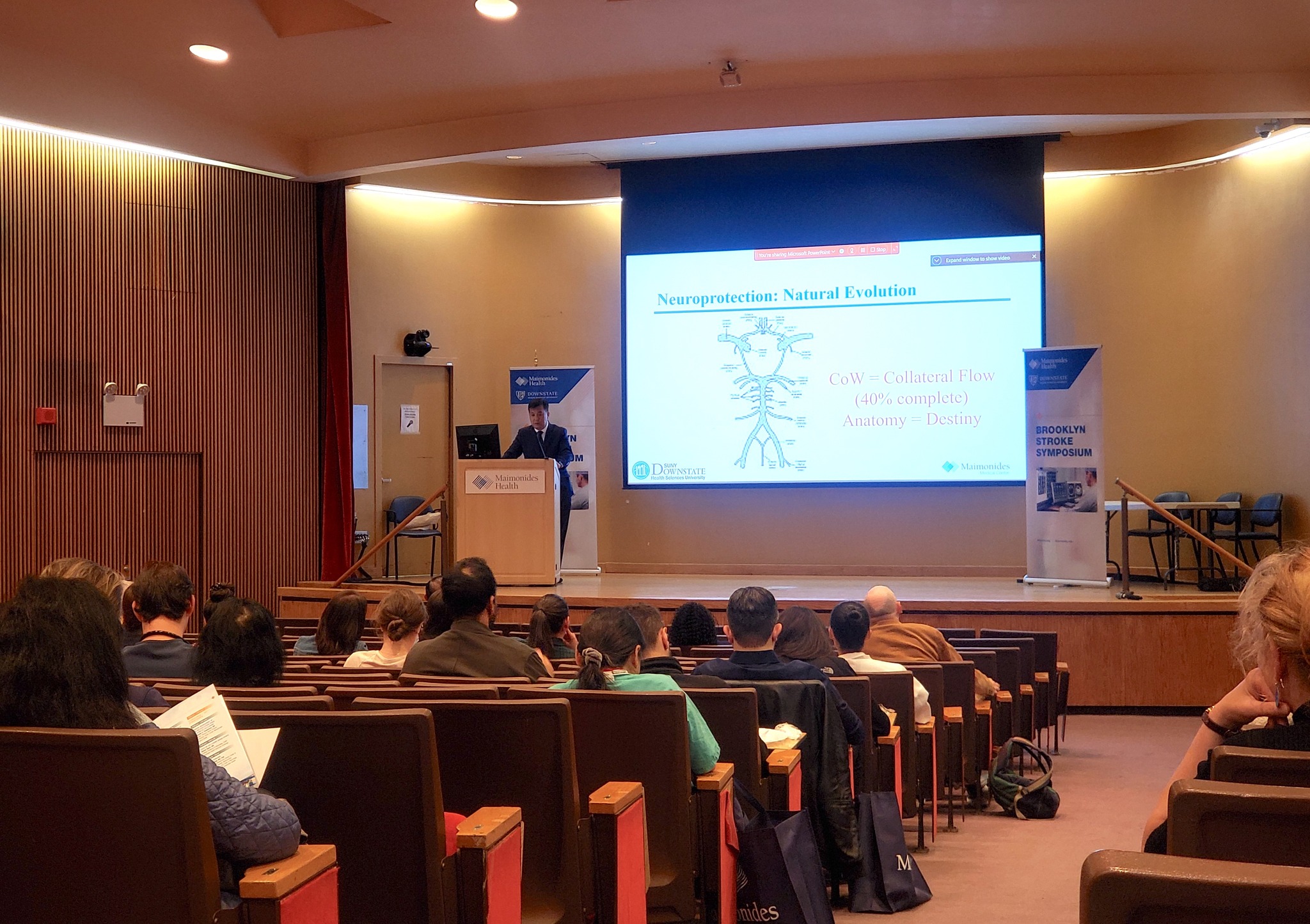 Speakers from Maimonides Health included Daniel Rosenbaum, MD, Regional Chair of Neurology; Q. Tony Wang, MD, PhD, Director of the Jaffe Comprehensive Stroke Center; Ilya Levin, DO, Director of Neurocritical Care; and Benjamin Youdelman, MD, Director of Thoracic Aortic Surgery. Nikolaos Papamitsakis, MD, and Steven Sparr, MD, of SUNY Downstate Health Sciences University were also featured speakers, along with other stroke specialists from institutions like NYU Langone Health, Montefiore Medical Center, and the University of Kentucky College of Medicine.